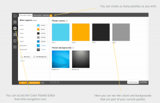 The second important addition to the DesignPro Editor is Color Palette Editor. This new tool lets you organize colors and backgrounds into palettes to create custom color themes for your designs. You are now able to change the colors and backgrounds of an entire custom website by just switching between palettes.